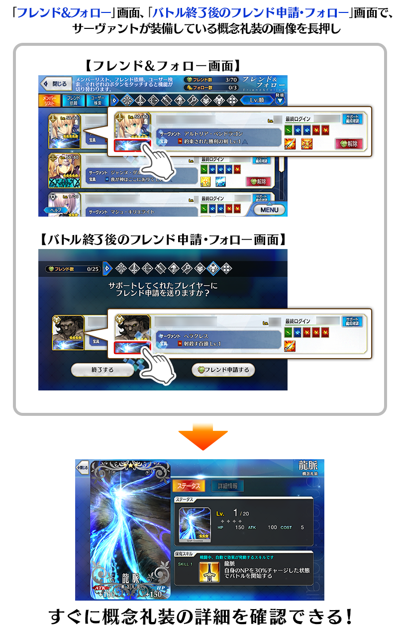 ②概念礼装アイコンを長押しして詳細画面へ遷移できる箇所を拡張