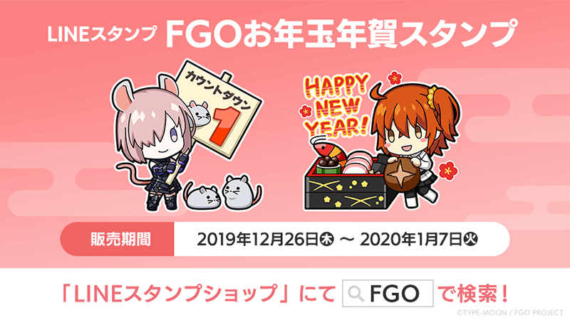 「Fate/Grand Order」のキャラクターと年末年始や日常を過ごすことができる「FGOお年玉年賀スタンプ」が期間限定で販売中!