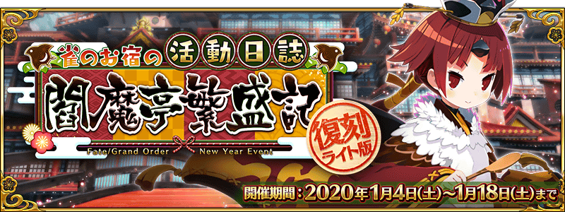 期間限定イベント「復刻:雀のお宿の活動日誌~閻魔亭繁盛記~ ライト版」を2020年1月4日(土) 10:00(予定)より開催することを発表いたしました。