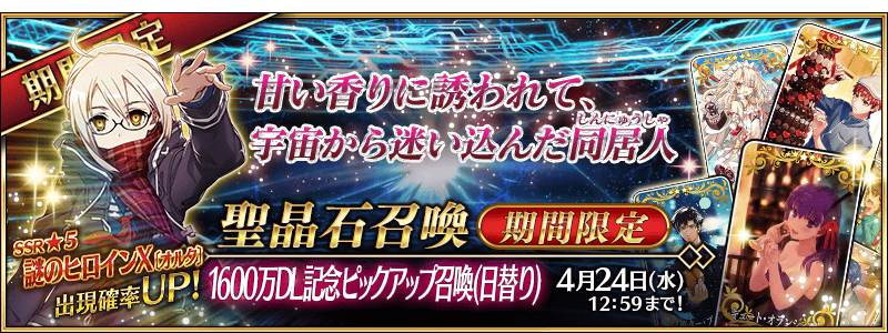 1600万DL突破を記念して「★5(SSR)謎のヒロインX〔オルタ〕」が期間限定で登場!