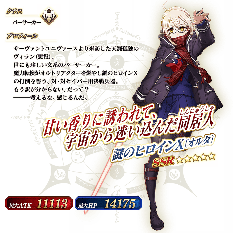 ※謎のヒロインX〔オルタ〕はピックアップ期間終了後、ストーリー召喚には追加されません。