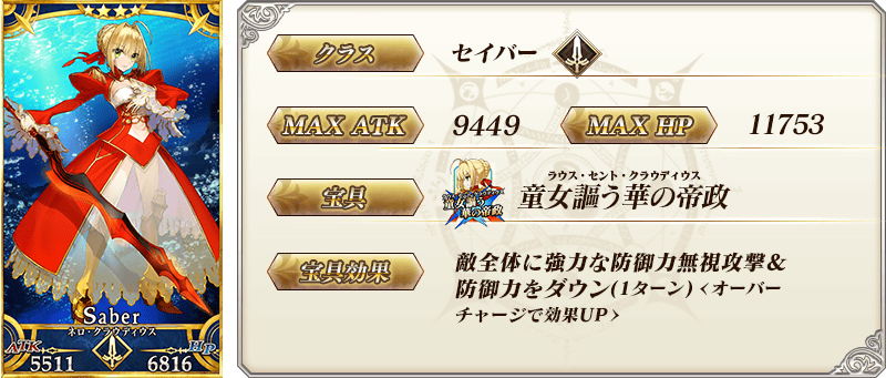 ※上記の「★4(SR)ネロ・クラウディウス(セイバー)」のセイントグラフは霊基再臨第2段階のものです。
