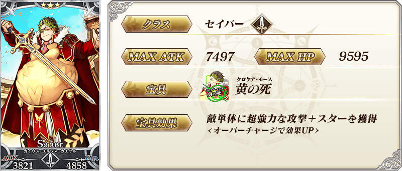 ※上記の「★3(R)ガイウス・ユリウス・カエサル」のセイントグラフは霊基再臨第2段階のものです。