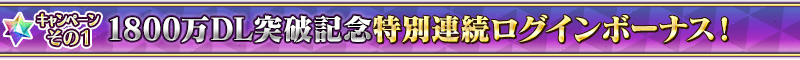 「1800万DL突破キャンペーン」開催を記念した特別連続ログインボーナスを実施いたします。