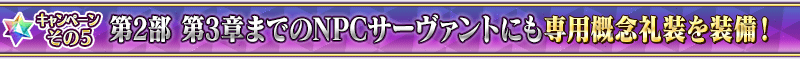 2019年11月13日(水) 21:00以降、メインクエスト第2部 第4章に加え、第2部 第3章までに登場するすべてのNPCサーヴァントが概念礼装を装備するようになります。