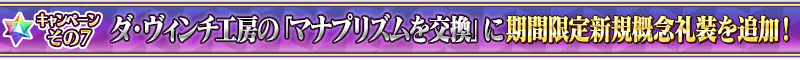 「1800万DL突破キャンペーン」開催を記念して、期間限定でダ・ヴィンチ工房の「マナプリズムを交換」に、下記の概念礼装を追加いたします。