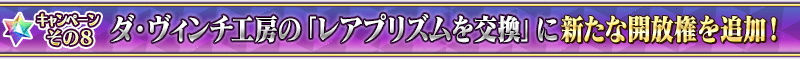 「1800万DL突破キャンペーン」開催を記念して、ダ・ヴィンチ工房の「レアプリズムを交換」に、『マナプリズム交換「風雅たれ」』を追加いたします。