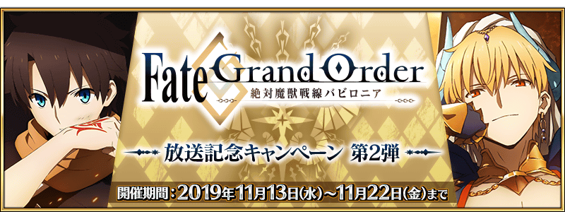 2019年11月23日(土) 3:59までに「特異点F 炎上汚染都市 冬木」をクリアしているマスターが対象