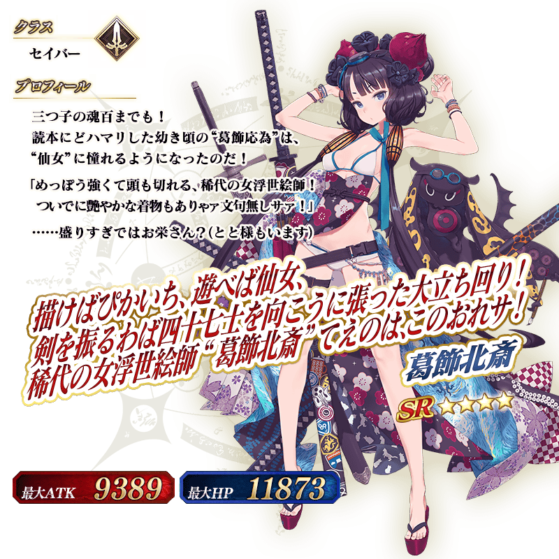 後日追加されるメインクエストをクリアすることで、期間限定サーヴァント「★4(SR)葛飾北斎(セイバー)」が正式加入します。