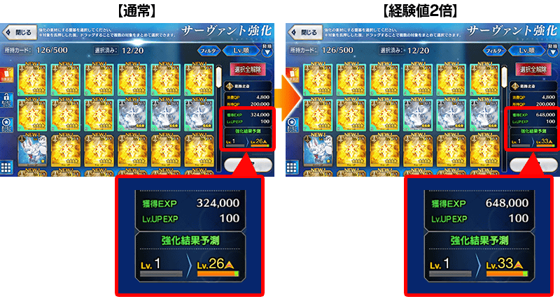 対象のサーヴァントを強化して、イベントに挑みましょう!