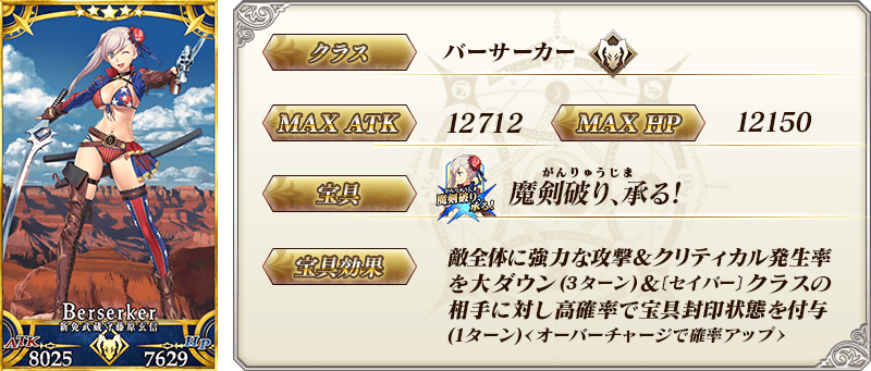 ※上記の「★5(SSR)宮本武蔵(バーサーカー)」のイラストは霊基再臨第2段階のものです。