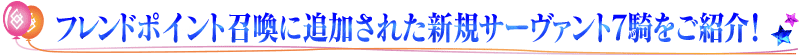 フレンドポイント召喚に新規サーヴァント7騎が追加!