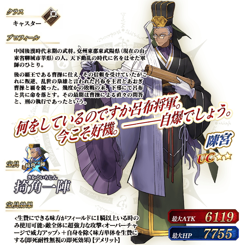 「★1(C)イアソン」「★2(UC)パリス」「★2(UC)ガレス」「★1(C)バーソロミュー・ロバーツ」「★2(UC)陳宮」「★1(C)シャルロット・コルデー」「★2(UC)サロメ」の宝具演出を紹介いたします!