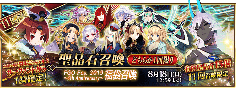 ◆「FGO Fes. 2019 ~4th Anniversary~ Lostbelt&亜種特異点ピックアップ召喚(日替り)」◆