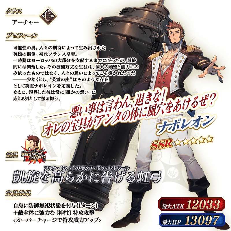 「★5(SSR)ナポレオン」「★5(SSR)アナスタシア」「★5(SSR)不夜城のキャスター(シェヘラザード)」「★5(SSR)李書文(アサシン)」「★5(SSR)項羽」「★5(SSR)シトナイ」の宝具演出を紹介いたします!