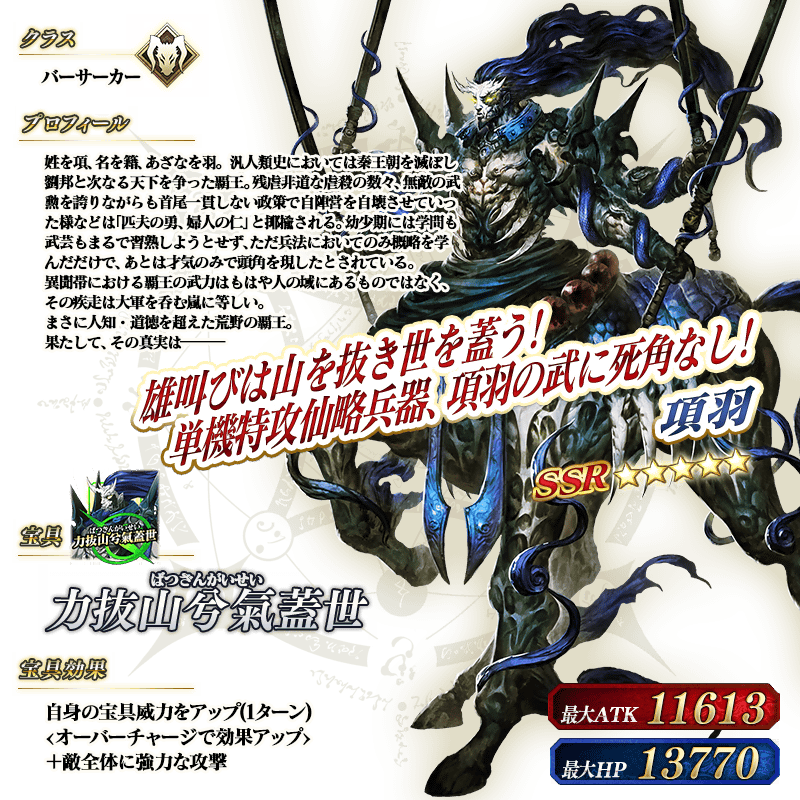 ※上記の「★5(SSR)項羽」のイラストは霊基再臨第2段階のものです。