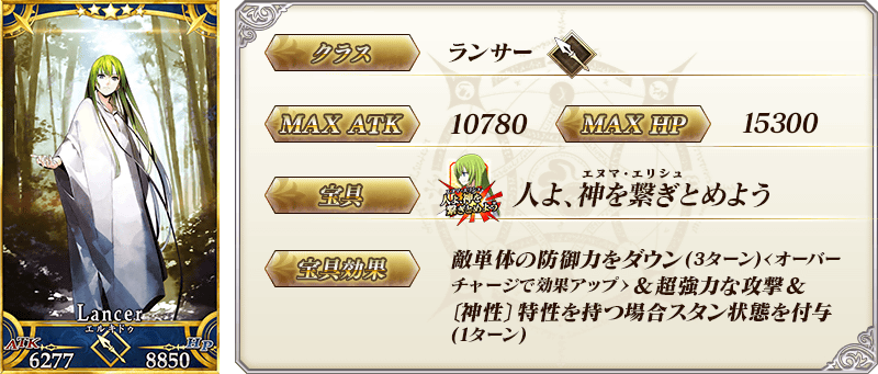 ※上記の「★5(SSR)エルキドゥ」のイラストは霊基再臨第2段階のものです。