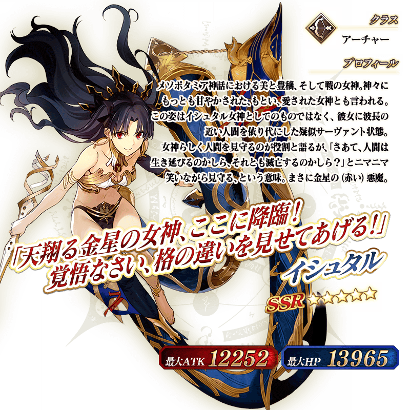 ※上記の「★5(SSR)イシュタル(アーチャー)」のイラストは霊基再臨第2段階のものです。