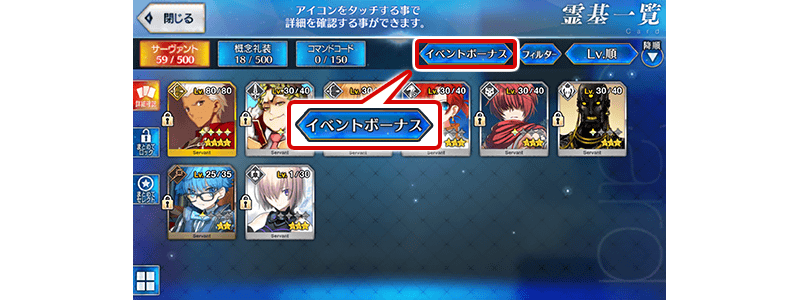 霊基一覧画面にイベントボーナスフィルターを追加いたします。