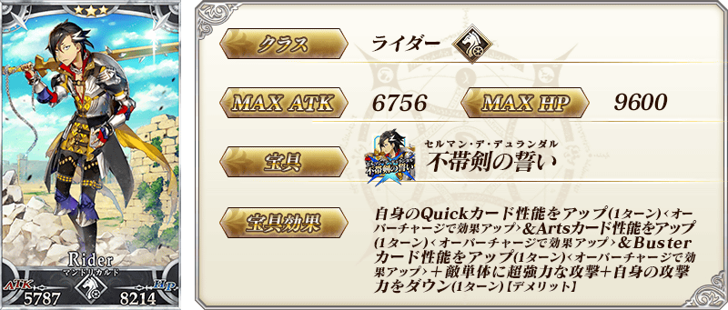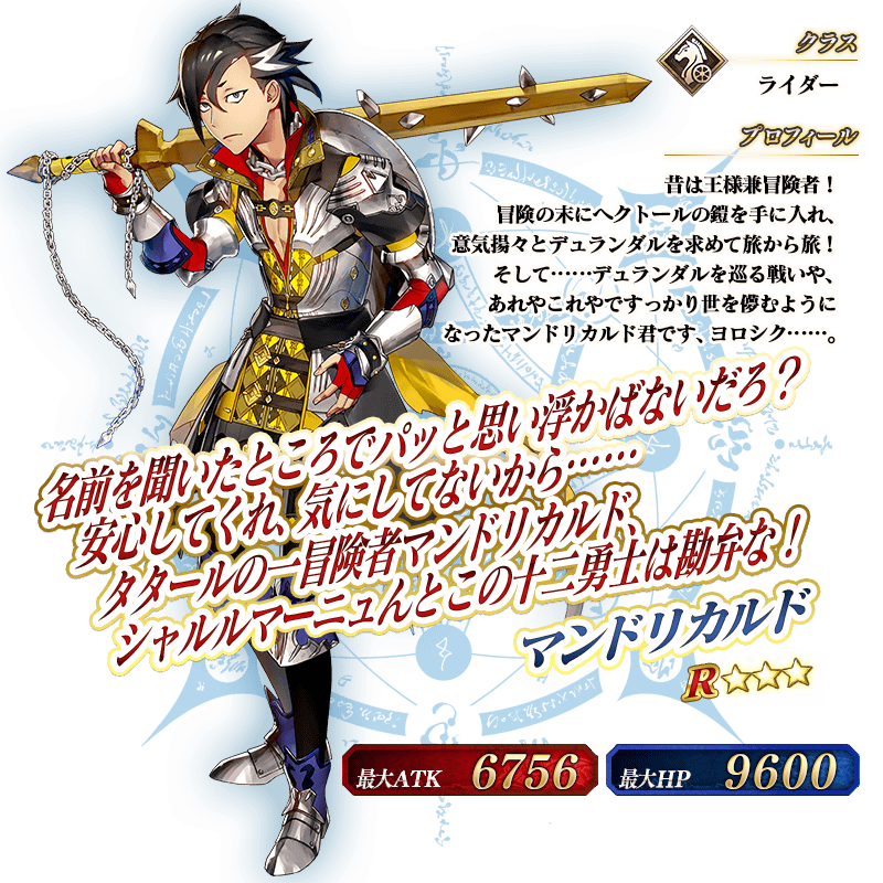 ※上記の「★3(R)マンドリカルド」のイラストは霊基再臨第3段階のものです。