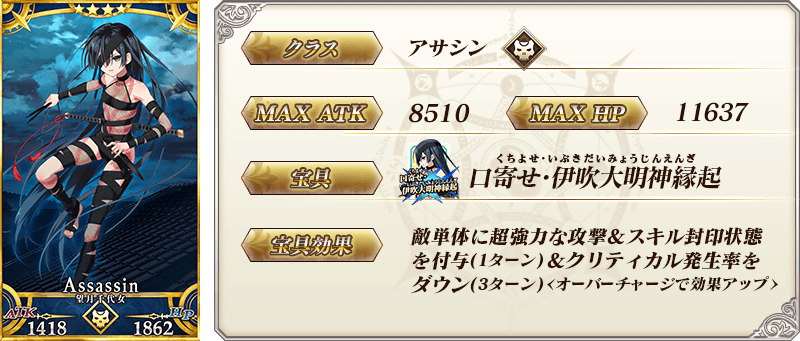 ※「★4(SR)アサシン・パライソ(望月千代女)」はピックアップ期間終了後もストーリー召喚にて排出されます。