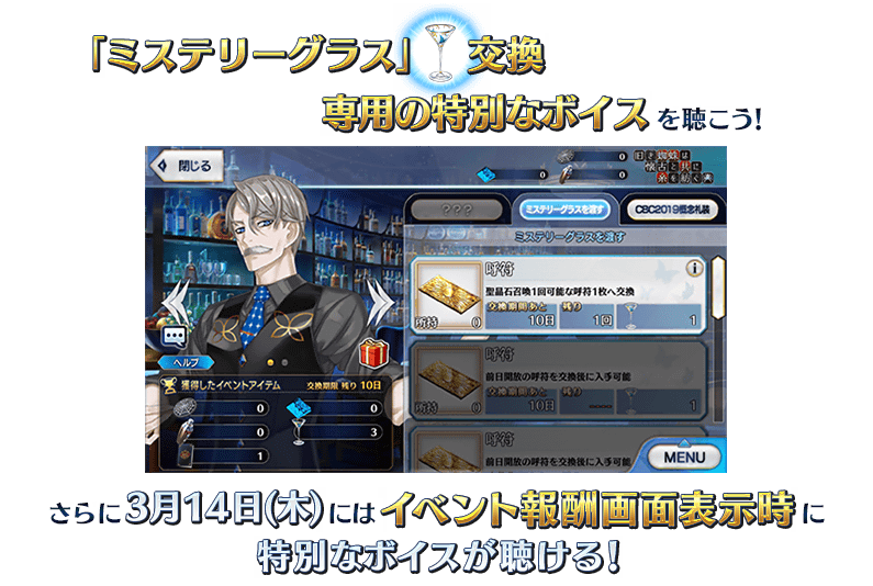 キャンペーン期間中にログインすると、毎日「ミステリーグラス」を1脚プレゼント!
