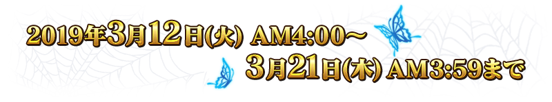2019年3月12日(火) AM4:00~3月21日(木) AM3:59まで