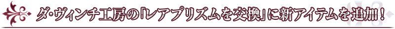 ダ・ヴィンチ工房の「レアプリズムを交換」に、下記の新アイテムを追加いたします。