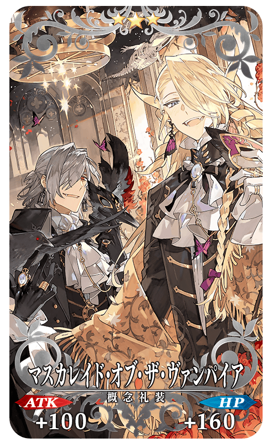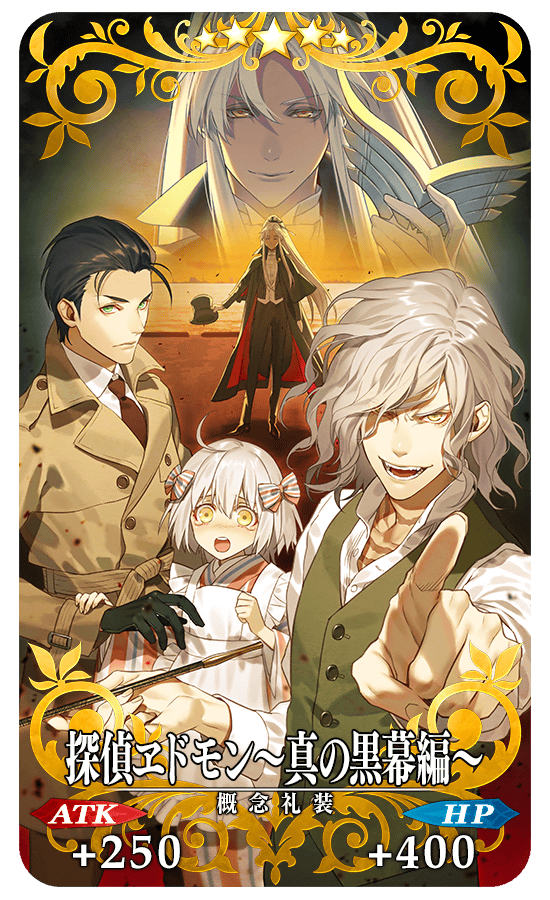期間限定概念礼装として「★5(SSR)探偵ヱドモン~真の黒幕編~」「★5(SSR)ダンス・ウィズ・ラウンズ」「★4(SR)深謀遠慮」「★4(SR)桜花爛漫」「★4(SR)センセとオレ」「★3(R)BARトロイア」「★3(R)アンダー・ザ・ナイフ」「★3(R)エンジェル・ブレス」「★3(R)マスカレイド・オブ・ザ・ヴァンパイア」が登場!