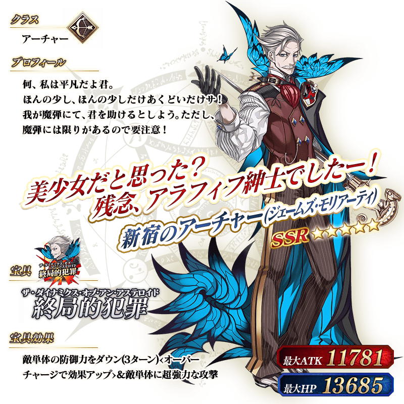 「★5(SSR)新宿のアーチャー(ジェームズ・モリアーティ)」が期間限定で登場!