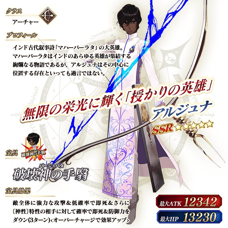 ※上記の「★5(SSR)アルジュナ」のイラストは霊基再臨第2段階のものです。