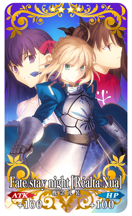 | 「Fate/stay night [Realta Nua]」アップデート記念クエスト | 【概念礼装】 ★4(SR)Fate/stay night [Réalta Nua] 1枚 |