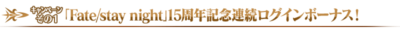 『「Fate/stay night」15周年記念キャンペーン』開催を記念した連続ログインボーナスを実施いたします。