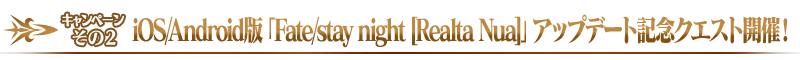※「Fate/stay night [Realta Nua]」アップデート記念クエストにアドベンチャーパートはありませんのでご注意ください。