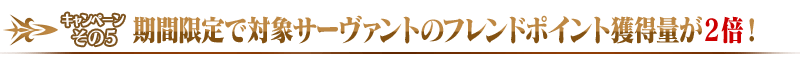 ※NPCサーヴァントの場合、対象サーヴァントであってもフレンドポイント獲得量2倍の対象外となりますのでご注意ください。