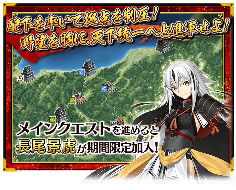 本イベントではメインクエストを進行すると、イベント限定サーヴァント「★4(SR)長尾景虎」が期間限定で加入します。