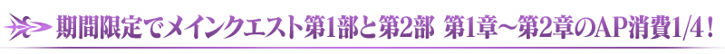 ※現在、永続的にメインクエスト第1部から第2部 第3章までのAP消費量が1/2になる状態となっています。