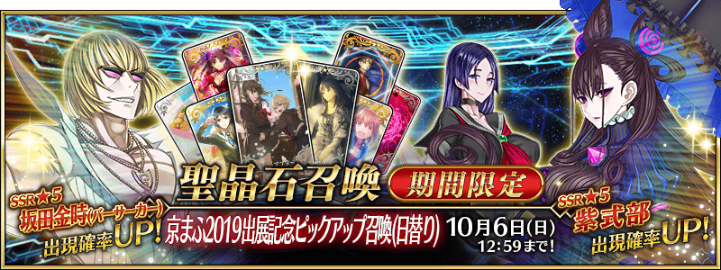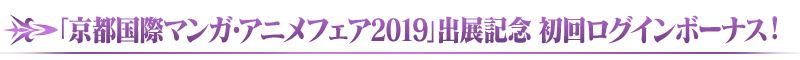 下記の期間中、「京都国際マンガ・アニメフェア2019」への出展を記念して、初回ログイン時に聖晶石10個をプレゼントいたします!