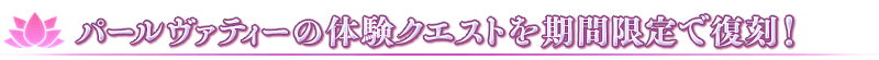 期間限定でパールヴァティーの体験クエストを復刻いたします!