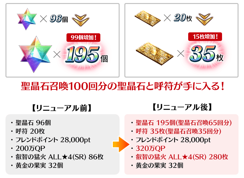 聖晶石、呼符、叡智の猛火 ALL★4(SR)、QPの獲得量が従来よりもアップしました!