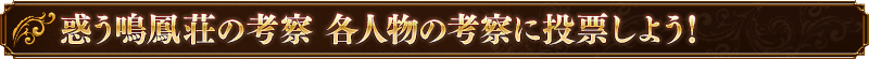 期間限定イベント「惑う鳴鳳荘の考察」のメインクエストを「第13節」までクリアして、物語の続きとしてあなたが見たいと思う人物の考察に投票しよう!