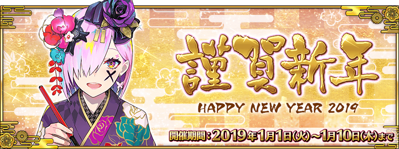 | 1月1日(火) AM0:00~23:59 | ギルガメッシュ(アーチャー) 「ニューイヤー2019ピックアップ召喚」限定概念礼装 |