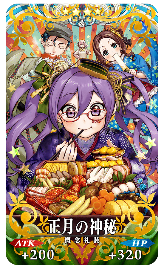 期間限定概念礼装として、「★5(SSR)笑顔のしるし」「★4(SR)正月の神秘」「★3(R)慎ましき豚」が登場!