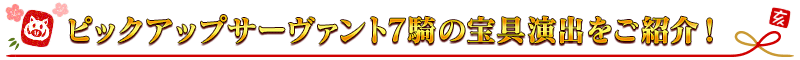 ※「ニューイヤー2019ピックアップ召喚(日替り)」は日替りとなり、シグルド、ギルガメッシュ(アーチャー)、スカサハ(ランサー)、ネロ・クラウディウス(キャスター)、クレオパトラ、ジャンヌ・ダルク〔オルタ〕(アヴェンジャー)、葛飾北斎はピックアップ期間中でも排出されない日がありますので、ご注意ください。