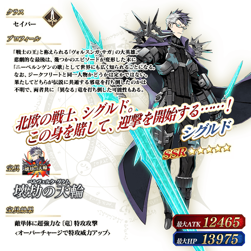 ※上記の「★5(SSR)シグルド」のイラストは霊基再臨第3段階のものです。