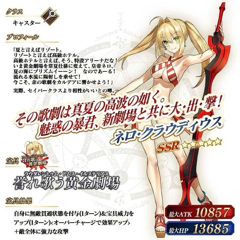 | 1月9日(水) AM0:00~23:59 | ネロ・クラウディウス(キャスター) 「ニューイヤー2019ピックアップ召喚」限定概念礼装 |