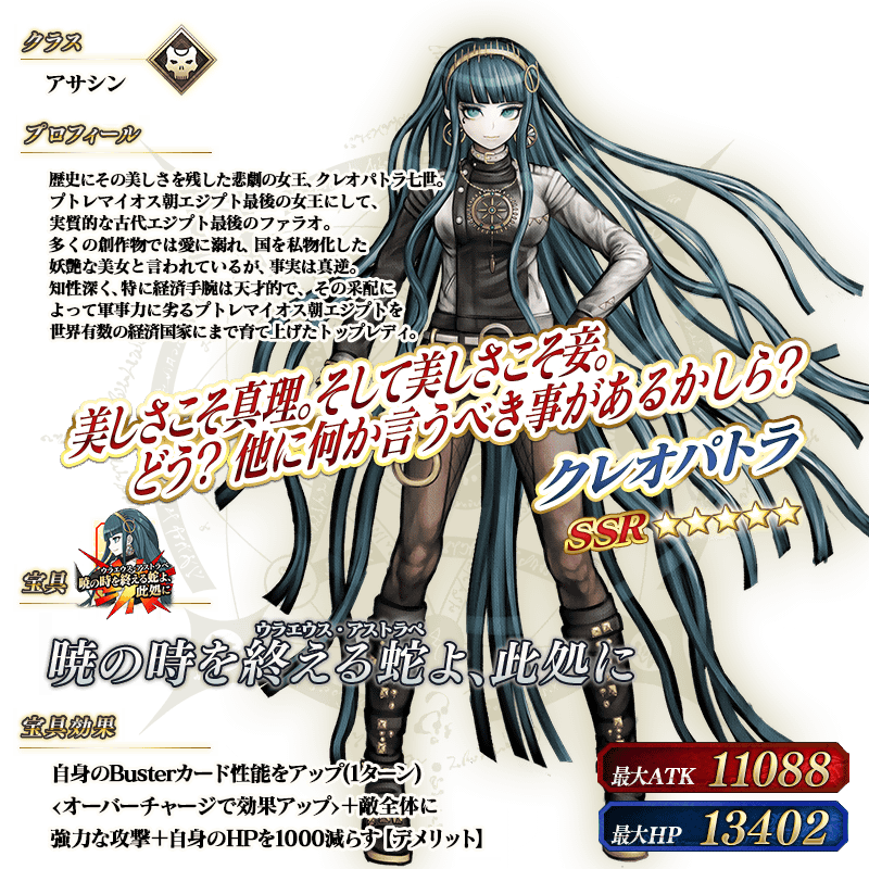 | 1月10日(木) AM0:00~23:59 | クレオパトラ 「ニューイヤー2019ピックアップ召喚」限定概念礼装 |