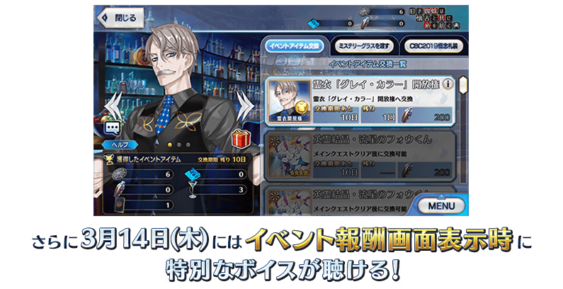 ※英霊結晶・流星のフォウくんALL★4(HP)、英霊結晶・日輪のフォウくんALL★4(ATK)については、本イベントのメインクエストをすべてクリア後に交換可能になります。