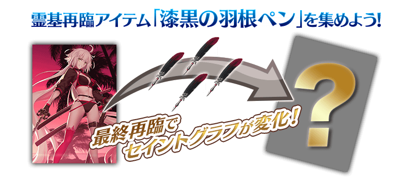 イベント期間中、「イベントアイテム交換」や「イベントポイント報酬」で手に入る「漆黒の羽根ペン」を使って、霊基再臨を4回繰り返すと、セイントグラフに変化が!