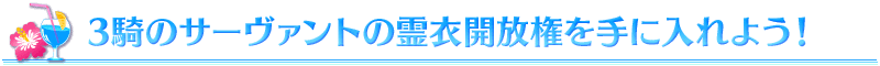 ※既に魔術礼装「トロピカルサマー」を所持している場合、魔術礼装獲得のためのクエストは出現しません。 ※トロピカルサマー獲得クエストにアドベンチャーパートはありませんのでご注意ください。